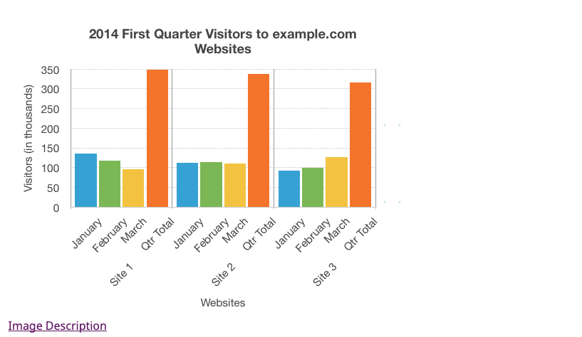 이미지 내에 읽을 수 있는 텍스트가 표시되는 경우가 있습니다. 이미지가 로고가 아닌 경우 이미지에 텍스트를 넣지 마세요. 그러나 텍스트 이미지를 사용하는 경우에는 대체 텍스트에 이미지와 동일한 단어를 포함해야 합니다. - 그래프 및 다이어그램과 같은 복잡한 이미지 :