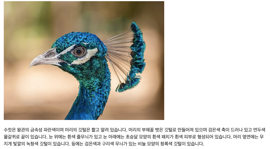 이 예에서는 웹 페이지에 있는 텍스트 단락을 사용하여 공작의 머리를 설명합니다.