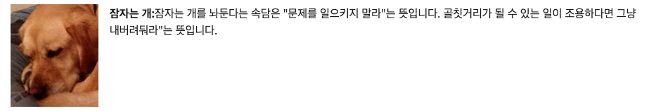이 잠자는 개 그림은 이미 인접한 텍스트로 충분히 설명되어 있습니다. 이 정보를 반복할 필요가 없으며 이 이미지에는 비어 있는 대체 값을 사용할 수 있습니다.