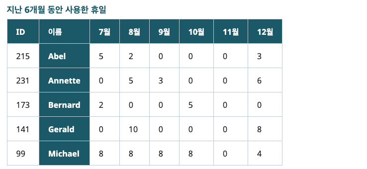 이 페이지에서는 행 헤더와열 헤더가 있는 표를 다룹니다.